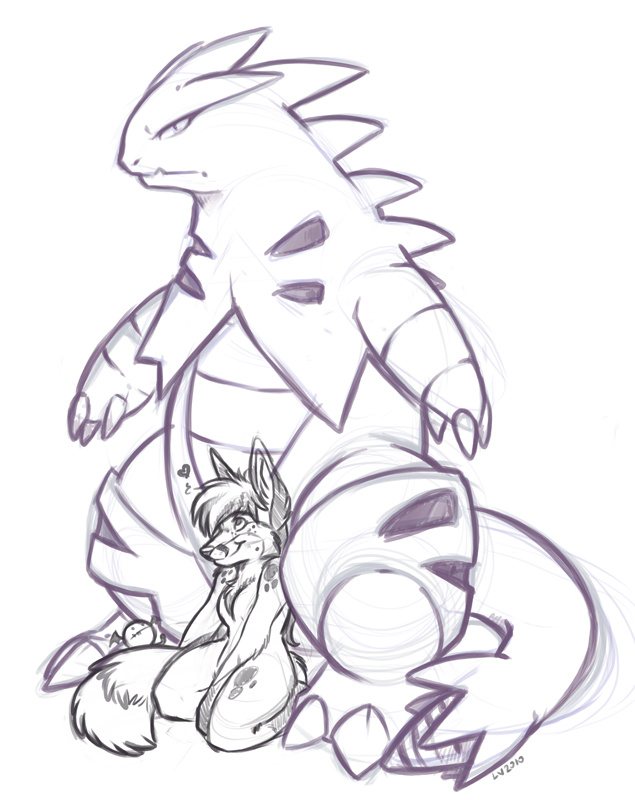 Just a quick sketch of my character and one of my favorite badass pokemons.