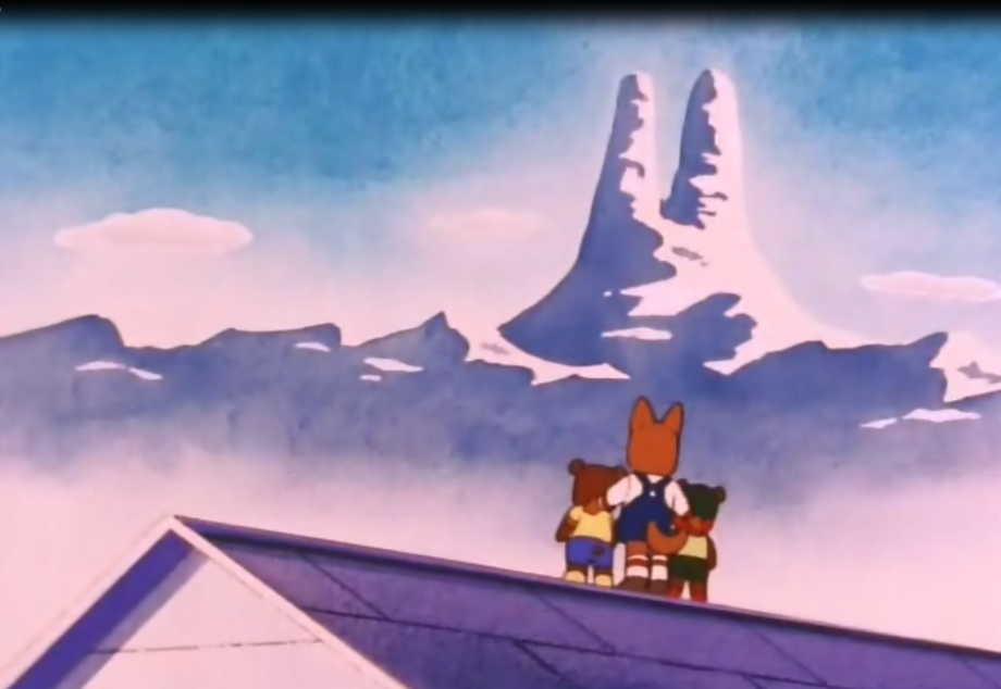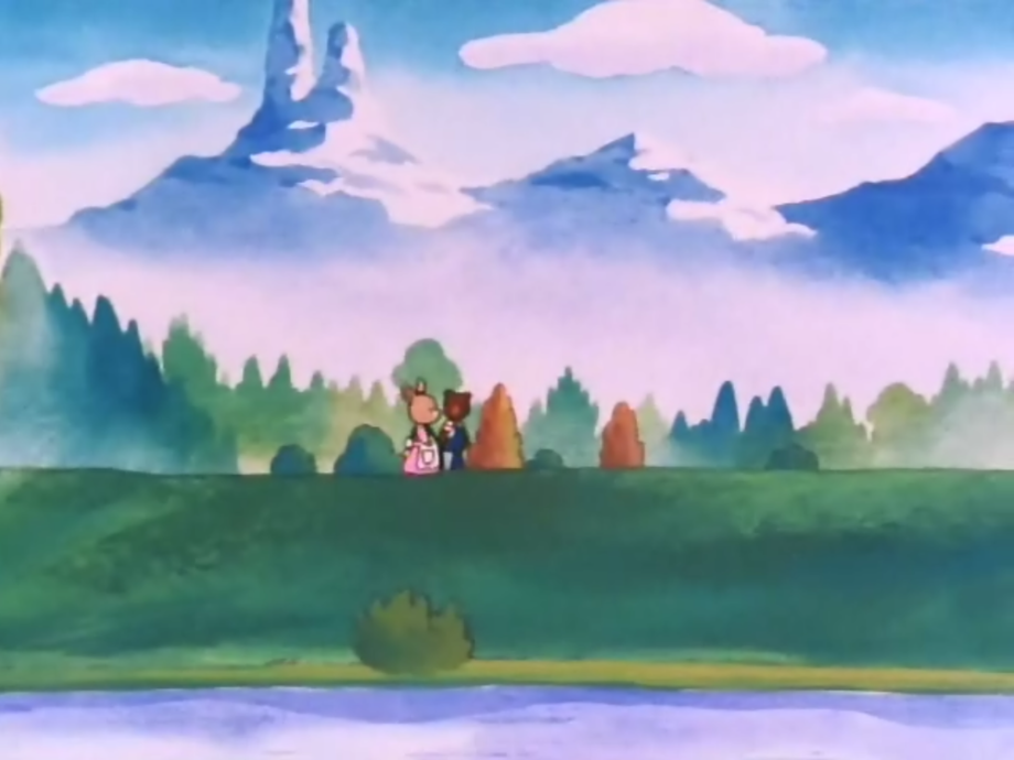 This landscape representing Mount's Rabbit from the Maple Town Adventures was made with the drawing software GIMP. I used some screen shots of  the TV series as a reference, it was quite fun to do and it was a way to get the hang of it ... I'm still working on another small version and another one of big dimensions and maybe I'll have some li'l ''corrections'' to do this and there but I'm quite happy of the results ... Also this picture is done with the mouse ^^