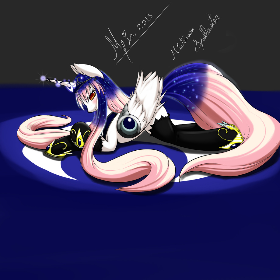The "original" version of Miaterasu Spellcaster, the pony version, here we have Argenian's delightful alicorn princess in all "her" glory. Wearing her own created attire for diplomatic meetings and travel (socks included). The tiara is something that if someday i get to work around the story in tumblr I'll tell.