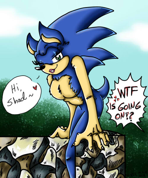 Fem Shadow and Fem Silver happily greeting male Sonic who just have come home without knowing that these lovely young women are there ~ Lets think that it's Sonic's birthday and these two surely have some nice gift to him *wink wink*