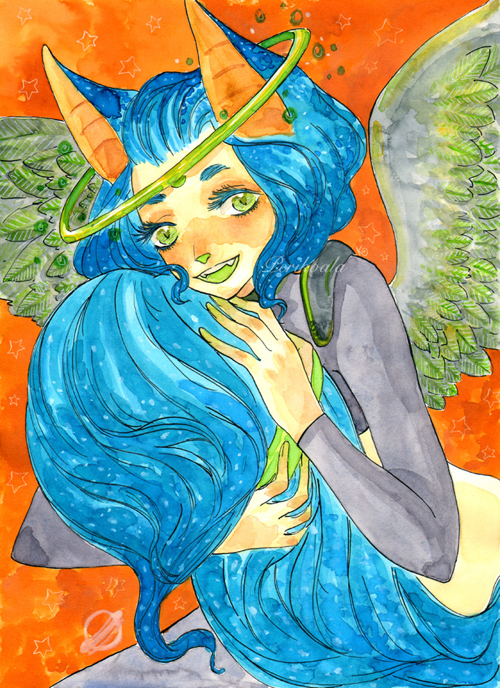 Tools: liquid watercolor/watercolor, indian ink, white gel pen - A3 size.