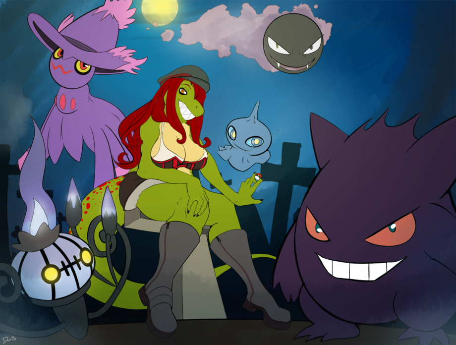 Have you seen her? The girl from lavender town? I hear she only tames ghost pokemon, that's so creepy. I've seen her wandering wandering the roads under moon light with her Gastly, while humming an eerie tune. I don't even think she sleeps. A friend told me they saw her chanting with her Mismagius, with her Shuppet giggling in her lap. My friend had nightmares that very evening. I'm telling you that girl is strange! Someone else told me she waits on the edge of the forest at night with her Chandelure. She offers to guide trainers through the woods by the light of it's candles, only to have her Gengar hide in the shadow the trainers cast to curse them. I...Wait, thats her! In the graveyard..S-She's smiling at me.