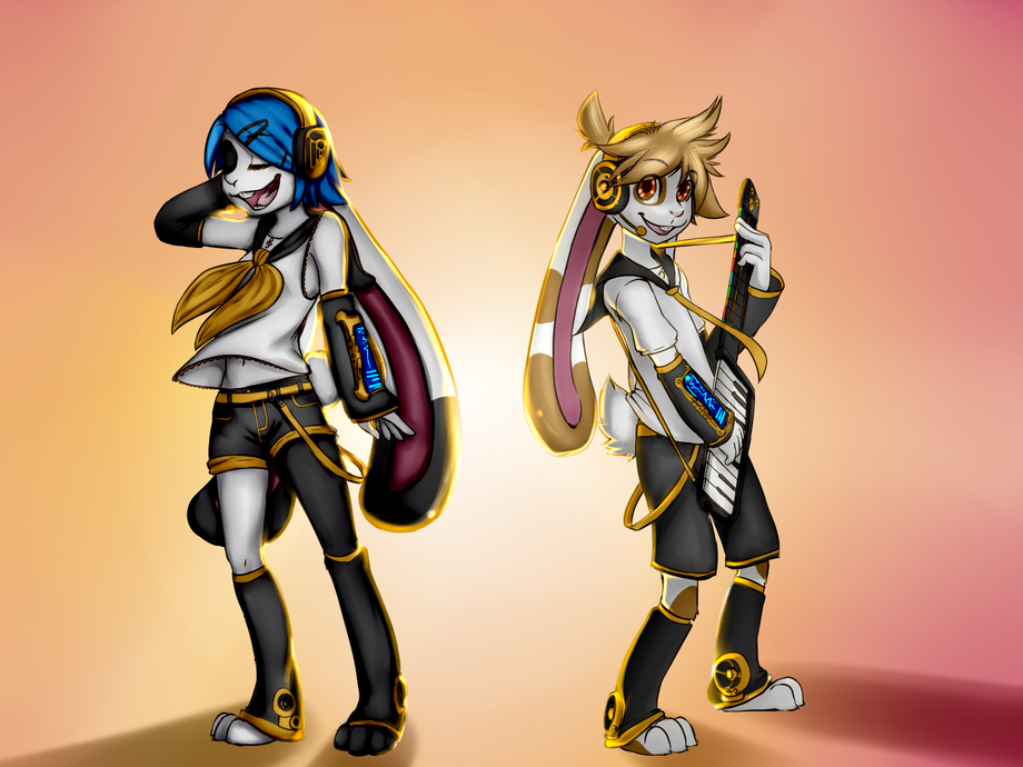 having a little cosplay fun as the Vocaloids Rin and Len Kagamine.