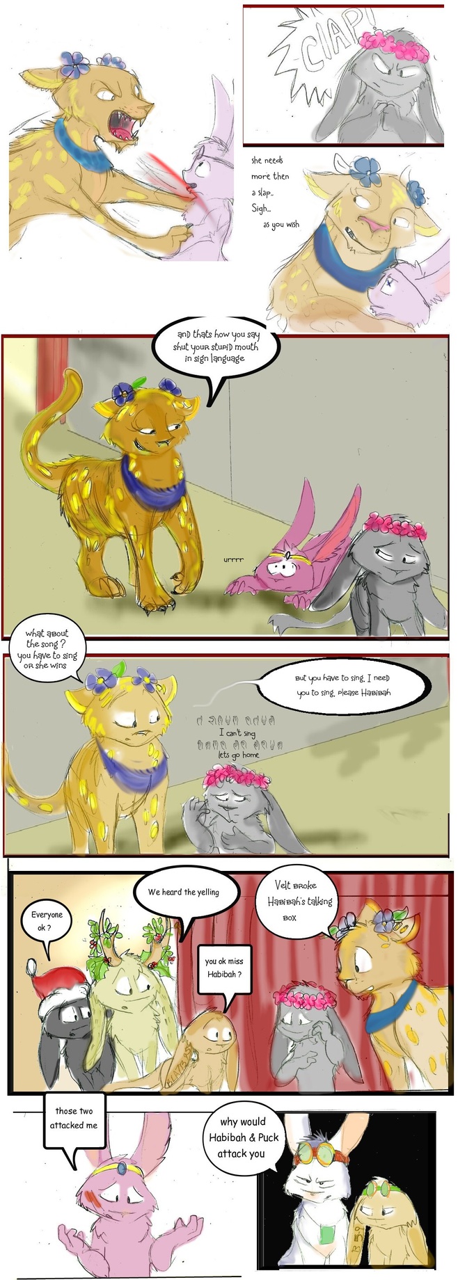 so bad Pun's are fine (wink) other notes Habibah is signing house not home, why ? ( its an easier sign to draw in one panel )
