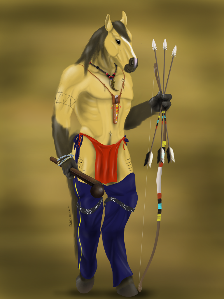 Art for a native horse. Simple portrait with traditional clothes and accessories. Interesting to do with many elements and details.
