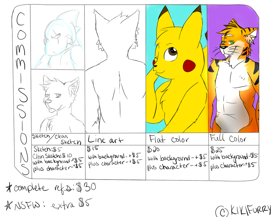 You can Update the Pics I make at any time (Sketch to color, or so), paying the difference in the price.