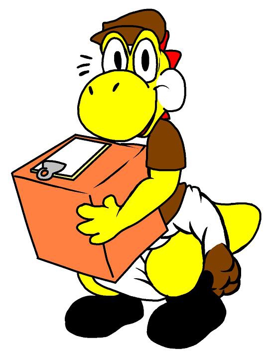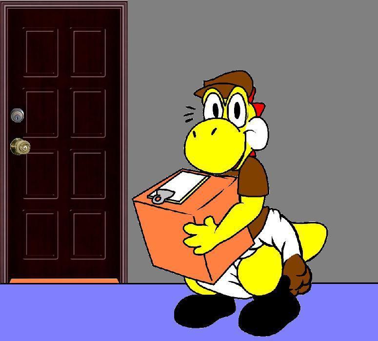 Showtime delivering a package to an apartment dweller. Although the yoshi is usually good with directions, he seems to have made another unexpected drop off.