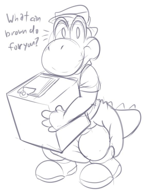 Showtime delivering a package to an apartment dweller. Although the yoshi is usually good with directions, he seems to have made another unexpected drop off.