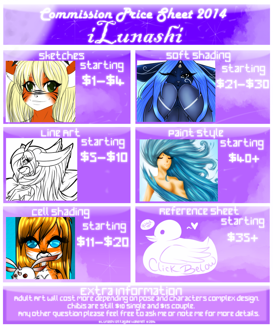 Please visit my T.o.Shttps://www.furaffinity.net/journal/3899646/Please visit my F.a.Qhttps://www.furaffinity.net/journal/4094412/Personal Web Page with all the info neededwww.ilunashi.com