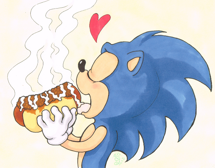 Can I just say? It is startling how thick that chili dog is. Like, wow. Somebody is putting together some throat-chokers to slap on the grill, because that looks far too satisfying to hold to be any kind of chili dog I've ever been served. XD