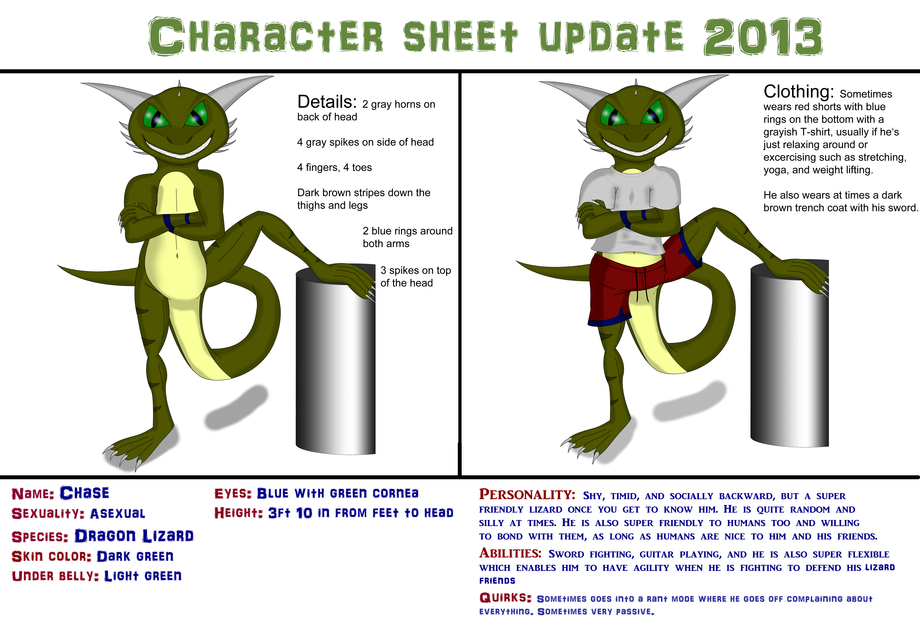 2. His under belly before was white. I changed it to a lighter greenish yellowy color since it goes better with his overall coloring and his eyes.