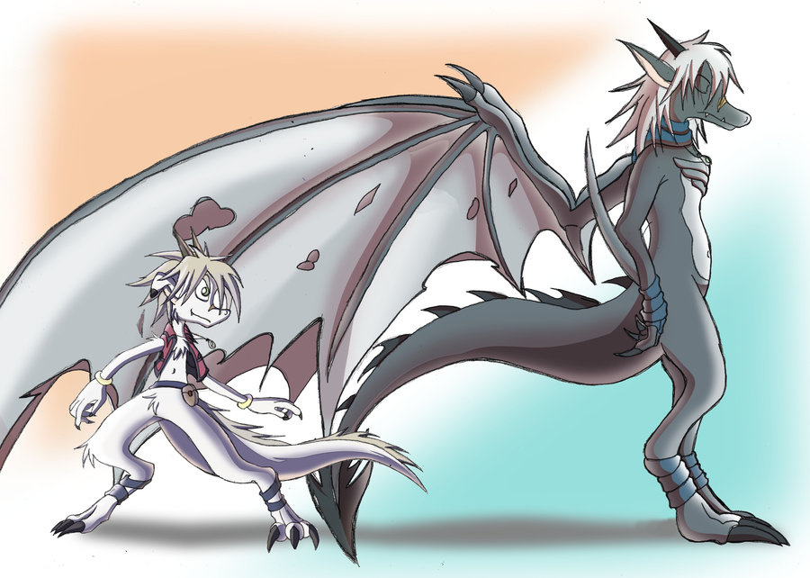 i made this pic around june previous year to explain why i draw my main dragon character in 2 very different ways: the 2 forms are both indeed Vyse, my story is divided in 3 story arcs, in the first one, Vyse looks just like the left side, wich is his original appearance, but certain events leading to the second story arc will cause him to undergo a drastically physical and emotional change, transforming him from the cute and small whelp he was into the a more serious and adolescent looking Vyse (the right one) for the second part and part of the third one. there are some things that doesnt change though, like his facial marks, he still wears his enackle in both forms, and back tattoo