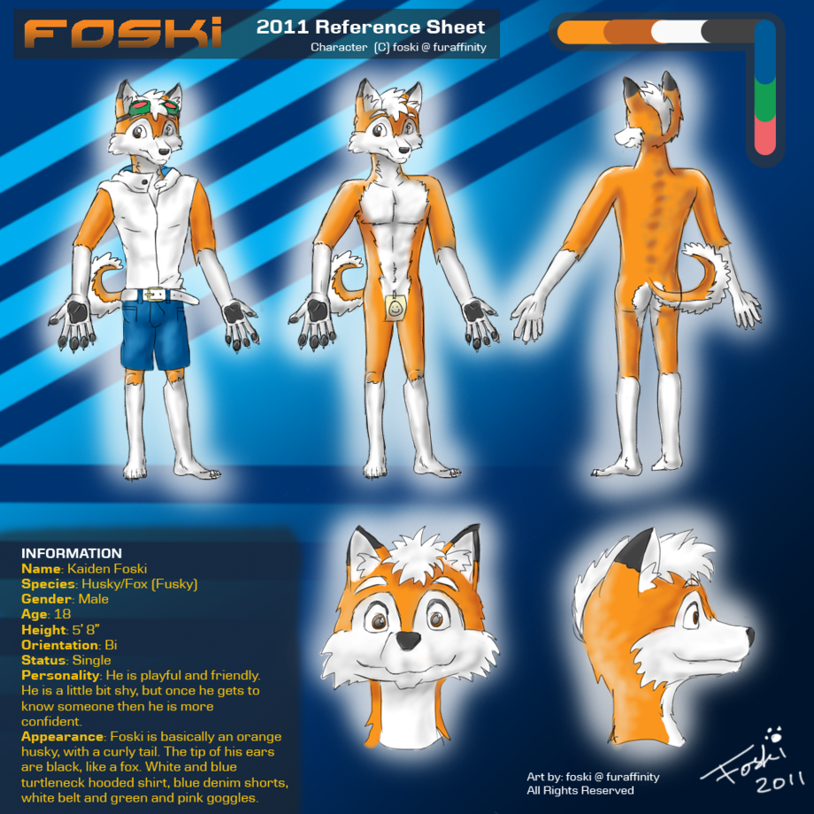 Original Description: "Foski (Kaiden Foski) is my personal fursona. He is basically an orange husky with black tips on his ears.