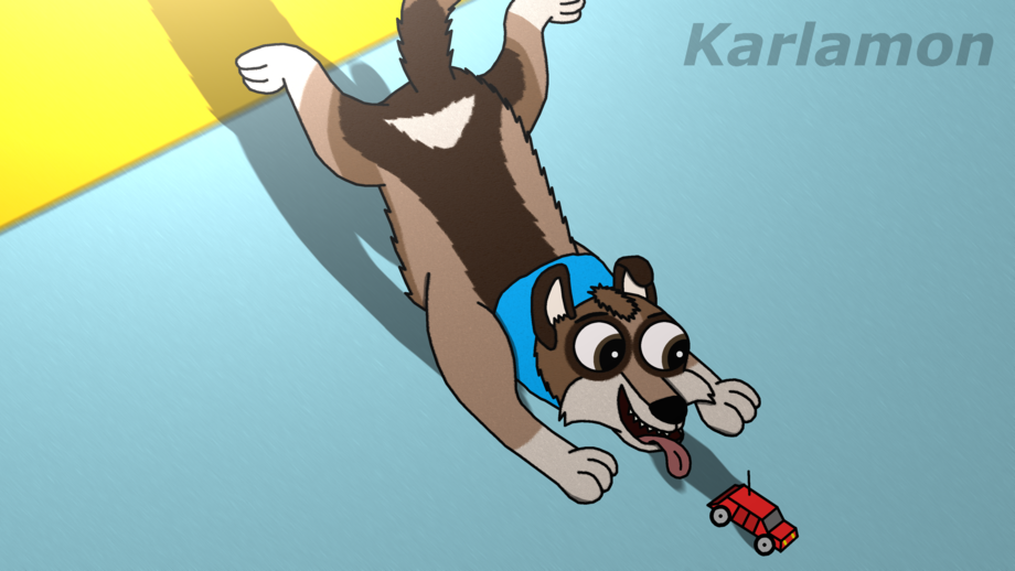 A request given by K9RASArt (on deviantART) featuring his fursona Chirs Furris chasing a remote control car (I suck at drawing cars xD). I decided to experiment in increasing detail like using GIMPPressionists and other artistic filters in GIMP to create carpet texture and fur. Hope ya like it Chris. :3