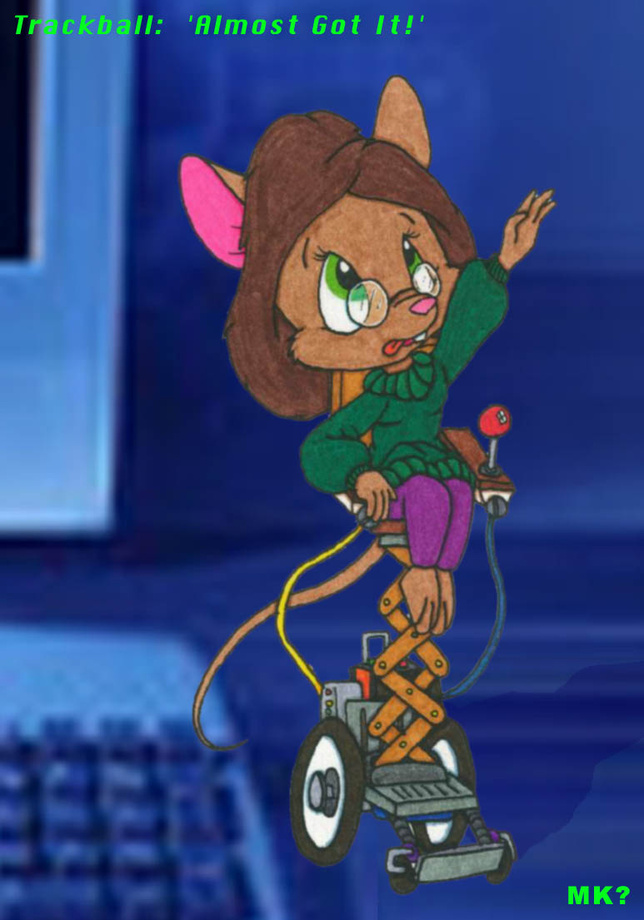 Here's John Nowak's Trackball; a little genius tech-lovin' mousie in a wheelchair. This is the scissor-lift she and Gadget designed together. I like the colors in this one.