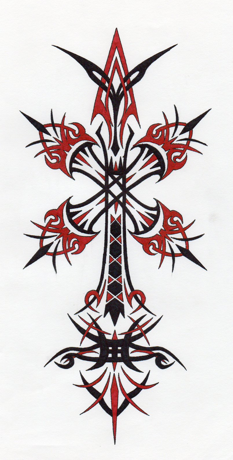 These are some old tattoo ideas that I drew long ago. The first one was my take on a cross from one of my favorite video games.