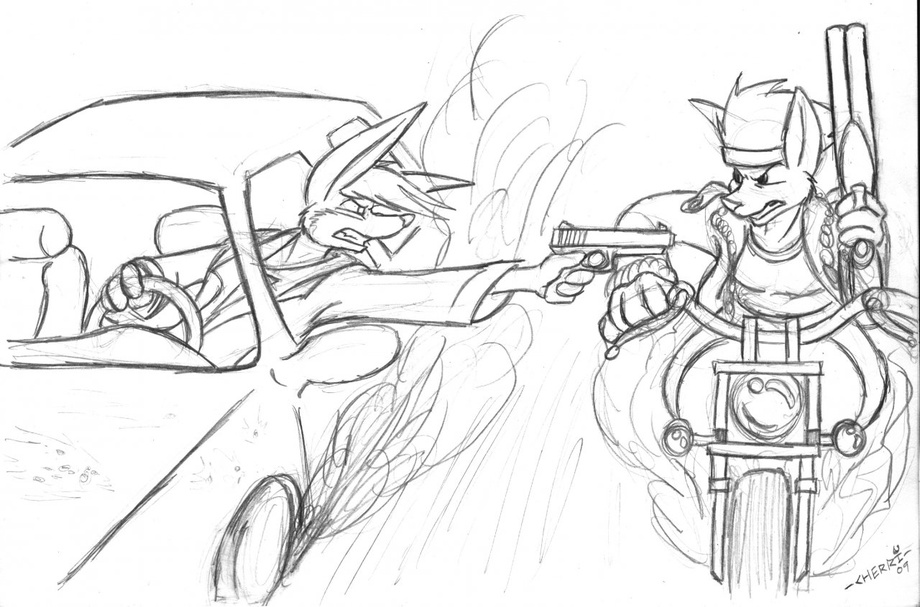 did this awesome sketch at KainCon this year. Its a scene from a story commission he is doing for me.