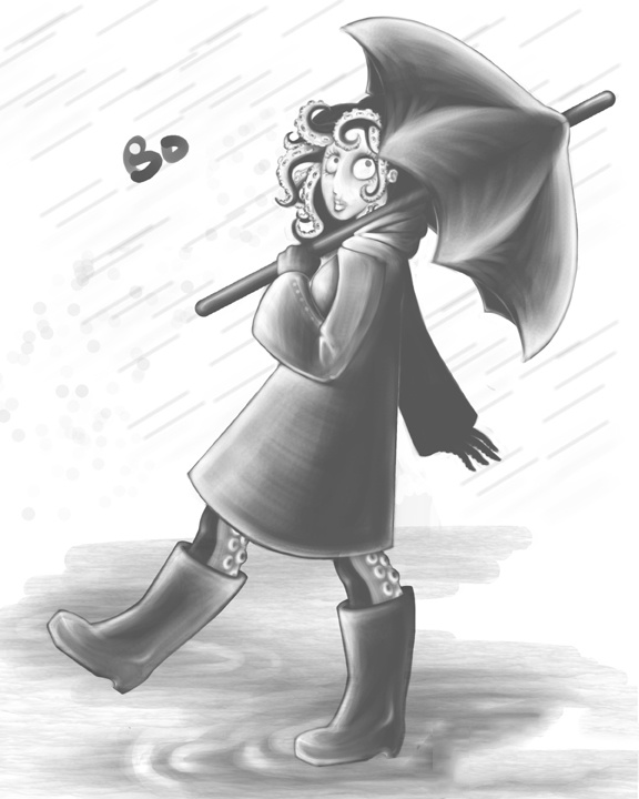 Just a cute painting of Bo, prancing around in the rain. I went to college in Seattle.