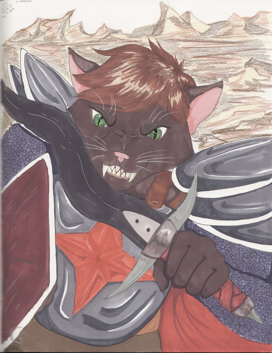 At RCFM this year I got to meet Kinolira (that's her DA name), really cool person. When I saw she had a spot in the dealers room, had to go commission her. And man did she do an awesome job on Sir Kain here! The scan doesn't do it justice. the sword even has a little glitter/shimmer to it she added.