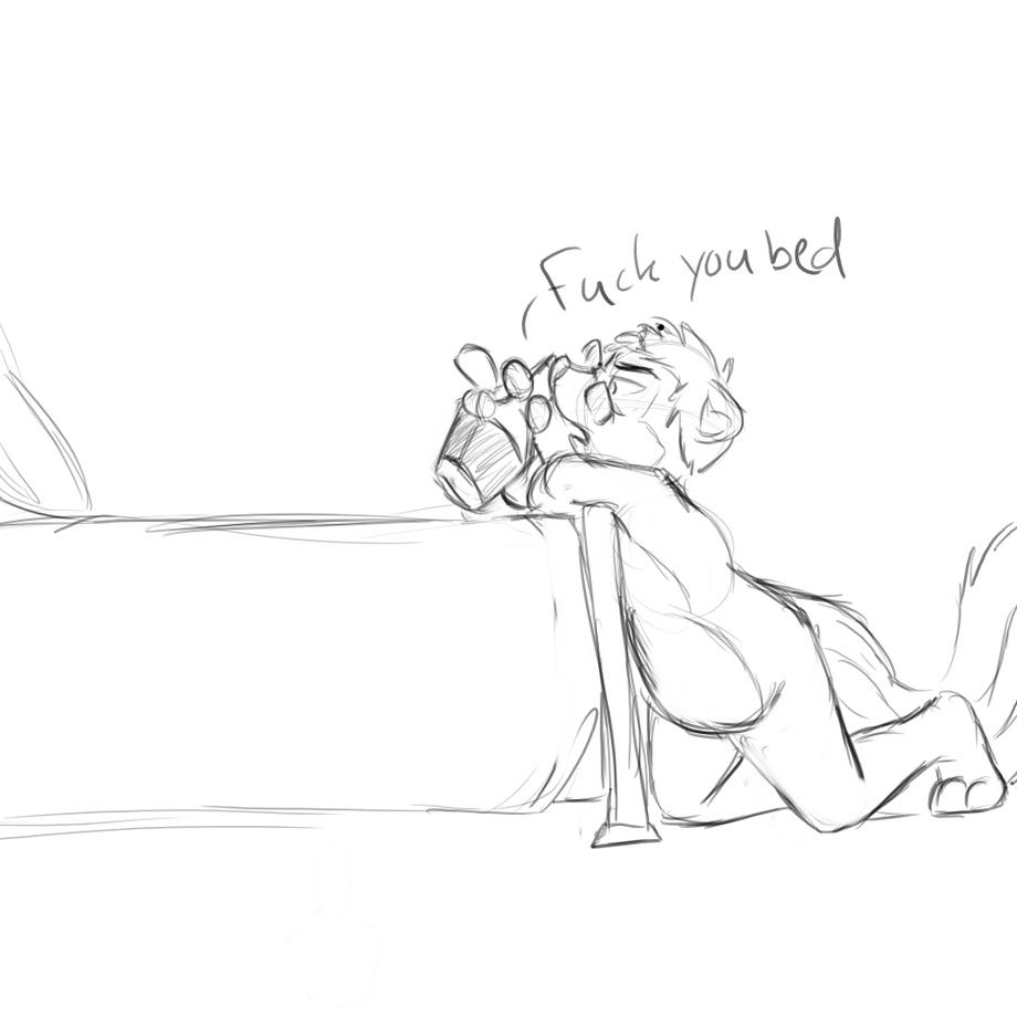 But still a funny sketch I got last night from buckdasystem/fa!spiderdasquirrel , and when he heard how little sleep I was gonna run on for work when my commission slot was getting started this came up.