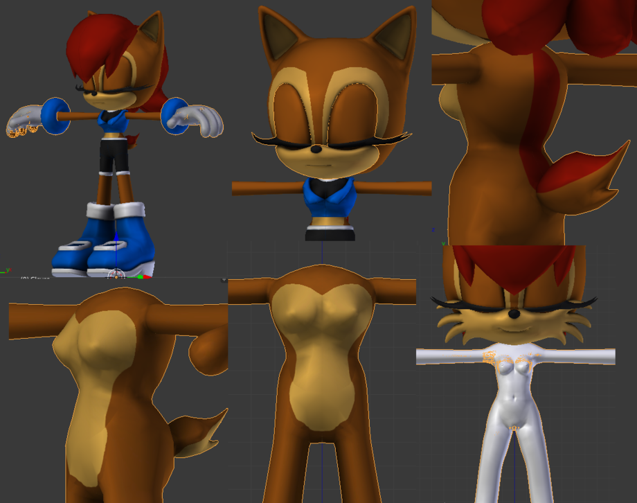 ALRIGHT the late Sally model is almost done, Turbo work hard on her, Very Hard and all he got to do now is Rig a Tounge Flex, and a simple body rig. then with this body can start with other female Sonic chars, like Mina or so on even Lien-da and more.