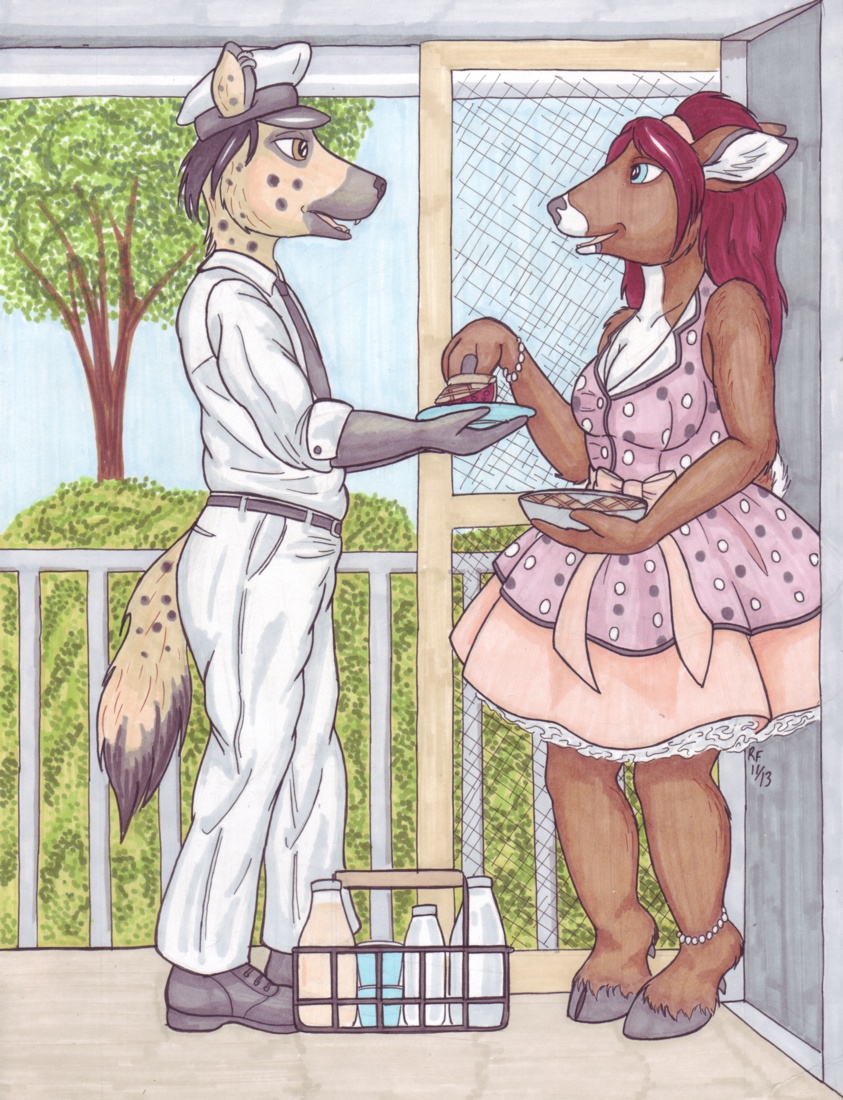 While her husband is away earning the money, Dixie flirts with Jackie the milkman. I wonder what he did to get a slice of pie? XD