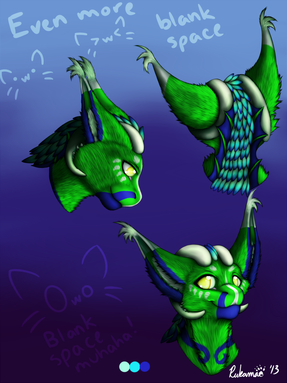 She's now a phoenix angel dragon :D With light blue to royal blue tipped feathers from the top of her head and beginning to turn white from her mid-back. The feathers shimmer in the light ^^