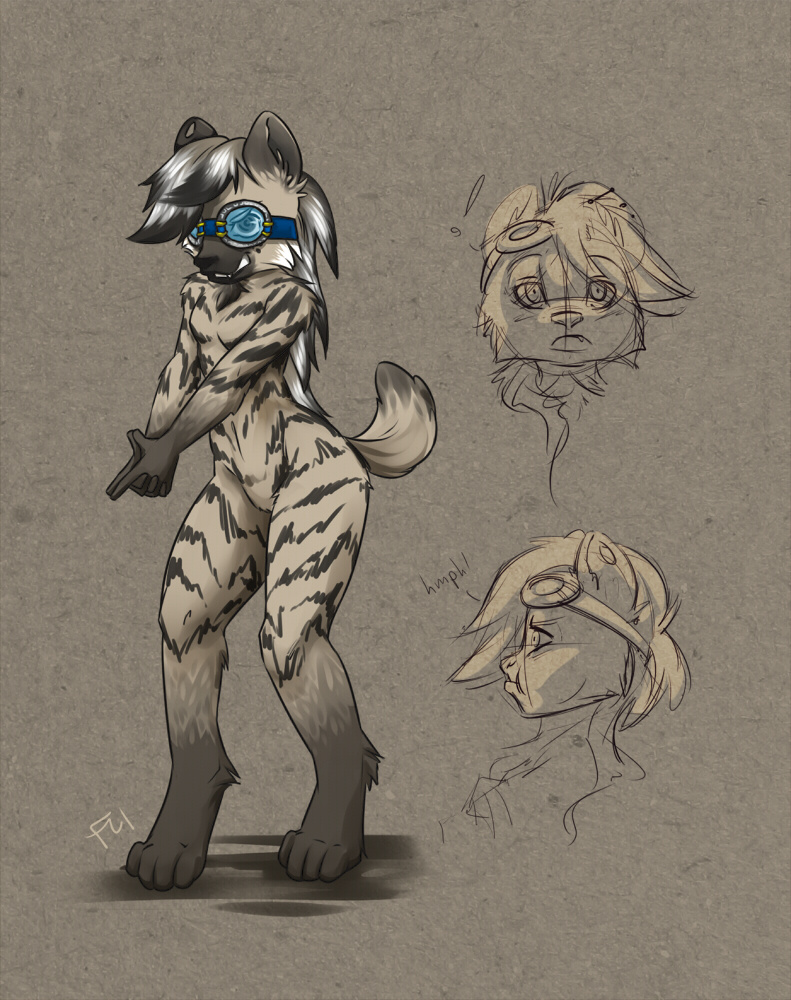 My striped hyena, Roxanne, who I like a lot better when I figured out how to do her body. I liked the sketches so I wanted to keep them in there too. *w*