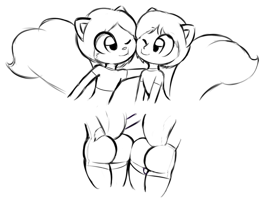 Jeez, this one sent the cute level off the damn charts. Big, fluffy tails, big cheeks (the ones on their faces are pretty awesome too), and that lovely buttsqueeze. Awesome image all around.