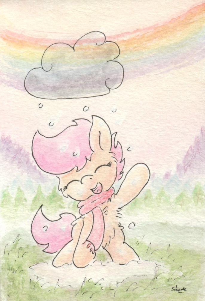 I can see how this began already. scoots "yay it's almost hearths warming day i can't wait to make snow ponies" dash "sorry squirt there's no snow scheduled for ponyville for hearths warming day" *sad scoot* *hearths warming day* dash "here you go squirt happy hearths warming day" *excited scoots*
