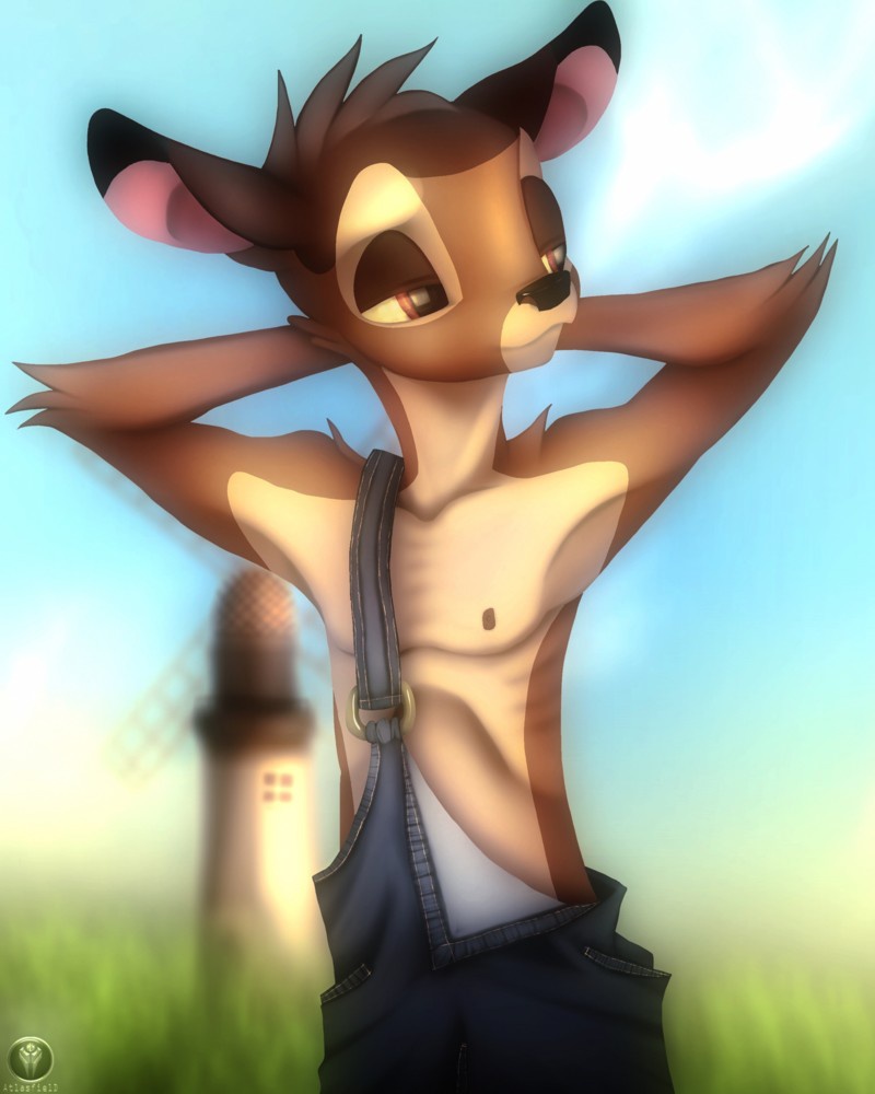 Second picture of Bambi with overol. Is the unique picture until this moment I added nipples the male characters, I decided see how looks, personally I don´t liked it, I feel is a human with the mask of an animal or something like. XD