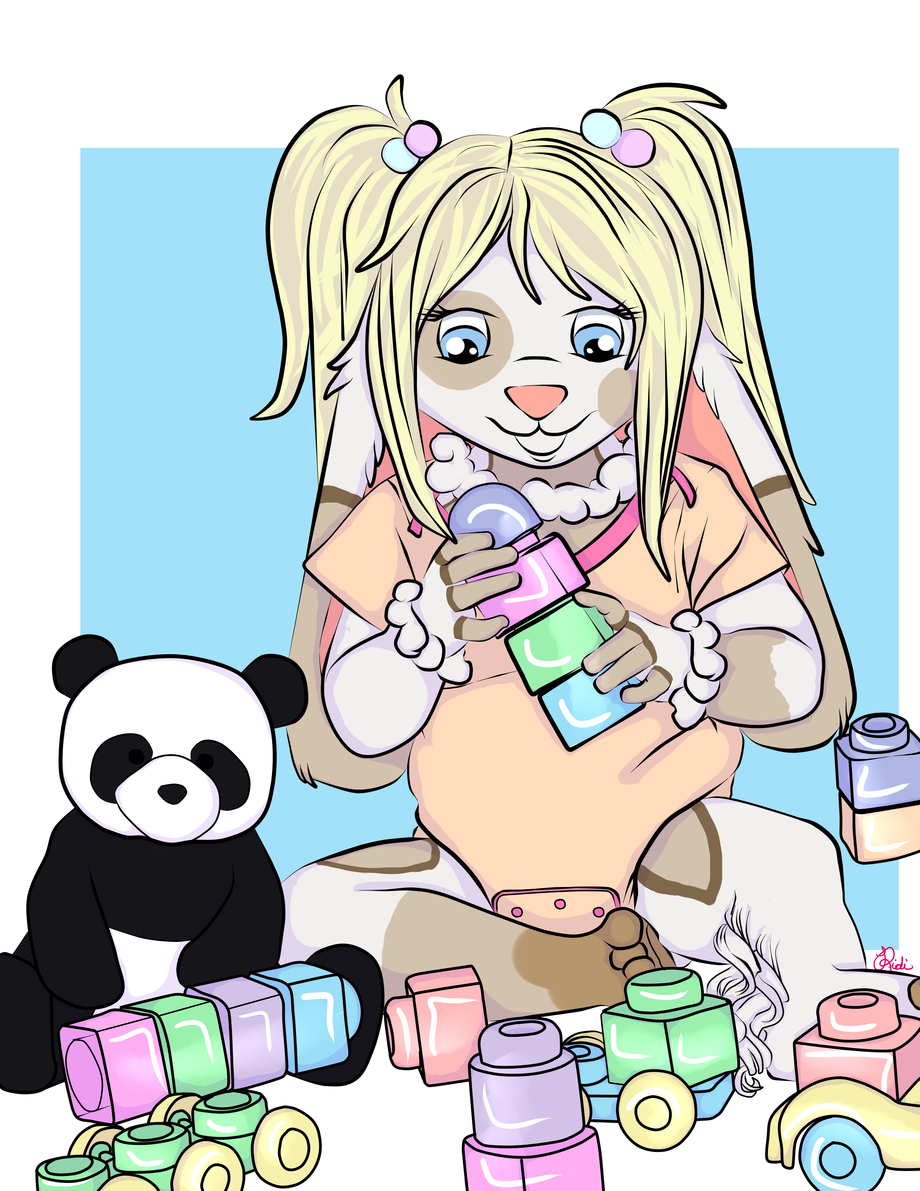 This is a commission for a cute bunny named Kia playing with her mega blocks