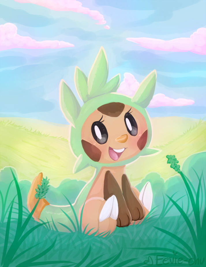A painting I made awhile ago for my boyfriend of his starter in Pokemon Y, a female Chespin named Seren! <3