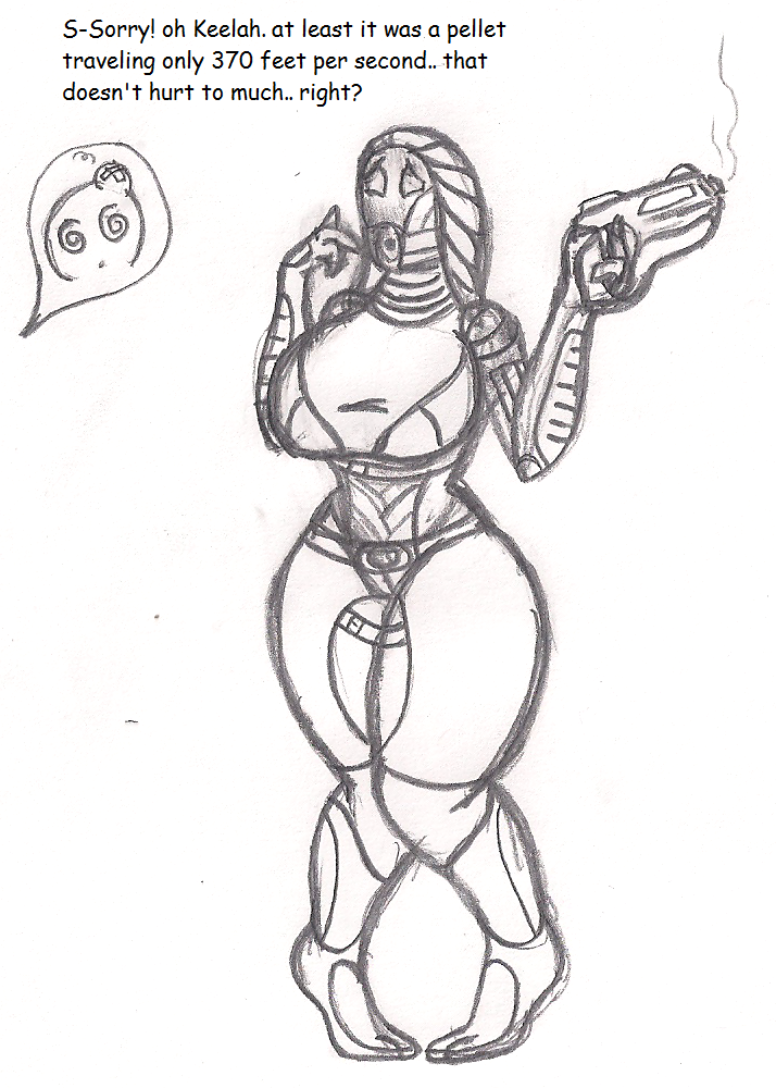 As an enginere, she has a brilliant mind, but not always a whole lot of competence with a gun. seen here by her use of a low velocity pellet gun and accidentlly shooting someone in the head. well, 370 FPS is around 250 MPH, which is a definate non lethal hit. still hurts like a bitch though.