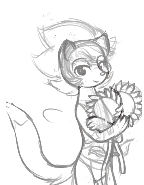 Short description: "A fire spirit that worships the sun. Sunoga is a sneaky weasel, sometimes he loves being a trickster. He gets mistaken as a girl due to his slender and frail physique, much to his chagrin. He's ornithophobic because when he was a child, a mother bird attacked him while he tries to steal the eggs."