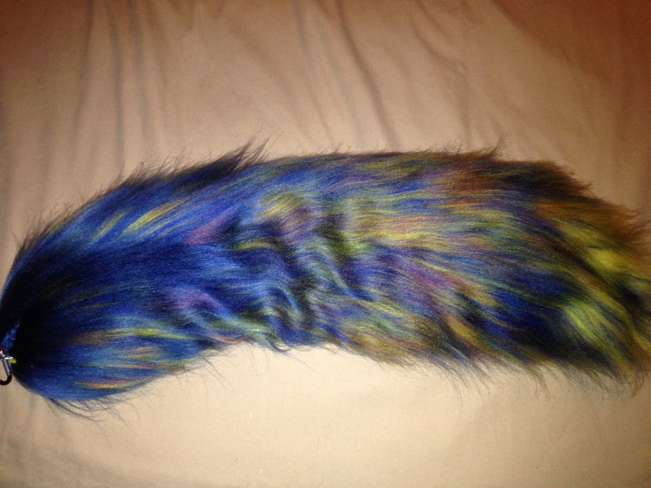 its blue, yellow, orange, red bled tail
