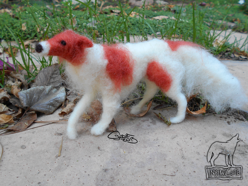 Another needle felted animal. This time it's my baby Misha! I have more pictures of various angles but I don't want to upload them all or make a collage. x) He's got a wire armature under all that fluff, so he's totally poseable, but I just left him in this pose because I like it. He's now occupying a corner of my desk with the clay sculpture of himself. Misha, meet Misha. x)