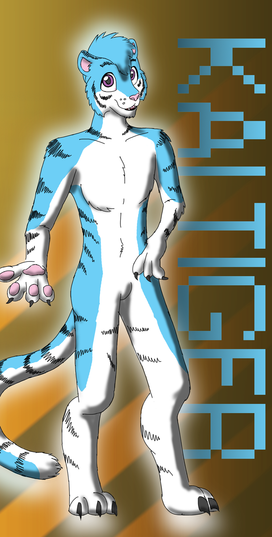 This is my badge for my one of my 'sona's. His name is Kai 'Cyber' the Tiger. He has a very distinctive teal/cyan and white colour scheme and purple eyes.