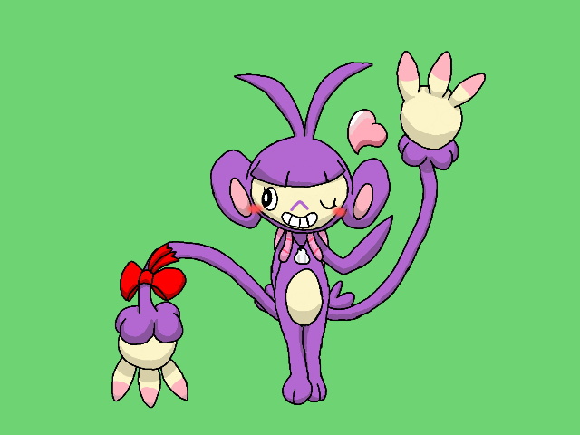 This is, without a doubt, the girliest picture of me, yet. You could say, I'm a embodiment of Monkey-Pokemon femininity. ;) The Shell Bell reminds me of home and it's chimes does some healing. That scarlet ribbon is on, for it matches well with my purple-hair, has my third favorite color and pretty appeal. Ke ke! Got other accessories and outfits in the Fashion Case backpack. It's an optional thing to put on. I wear the Shell Bell, mostly. *giggles* I thank my 'Punny-buddy for getting all this great stuff. *smooch* ^///^ <3 -----------------------------------------------------------------