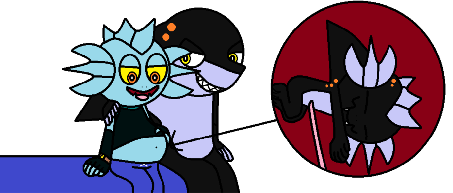 Meet Fang Grunt, Gill Grunt (The mother) and Terrafin's (The father) son. He has the element of his father and can swim on both the water and the ground, and breath in water like his mother too. He also has his father's body color and mother's eyes. He even loves his mother's breast milk a lot. He wanted to be a real Skylander like his parents when he grows up. I drew this picture a year ago.