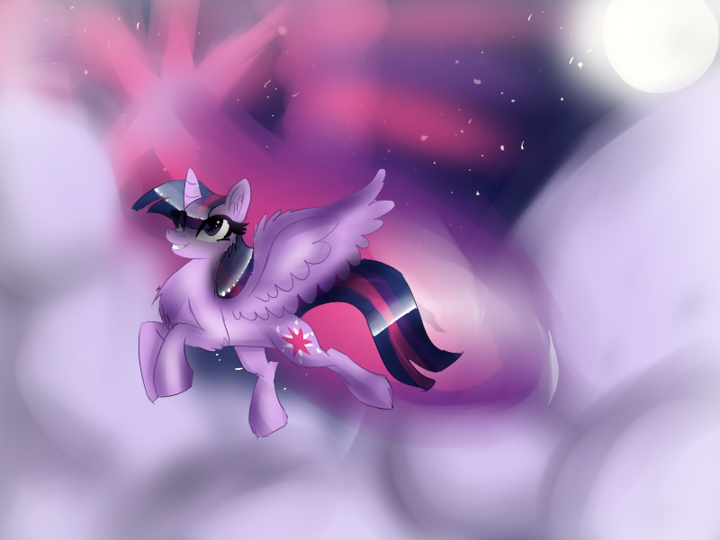 Hello again! ^^ This is my second fave pony, Twilight Sparkle. Actually, this pic was made last night, but I decided to upload it now. I was about to make a speedpaint about it, but it didn't work and it failed. And by the way, thanks to everyone, who gave me a watch! ^^ And this picture was inspired by the MLP FiM pmv: Shooting star. I hope you'll like it. :)