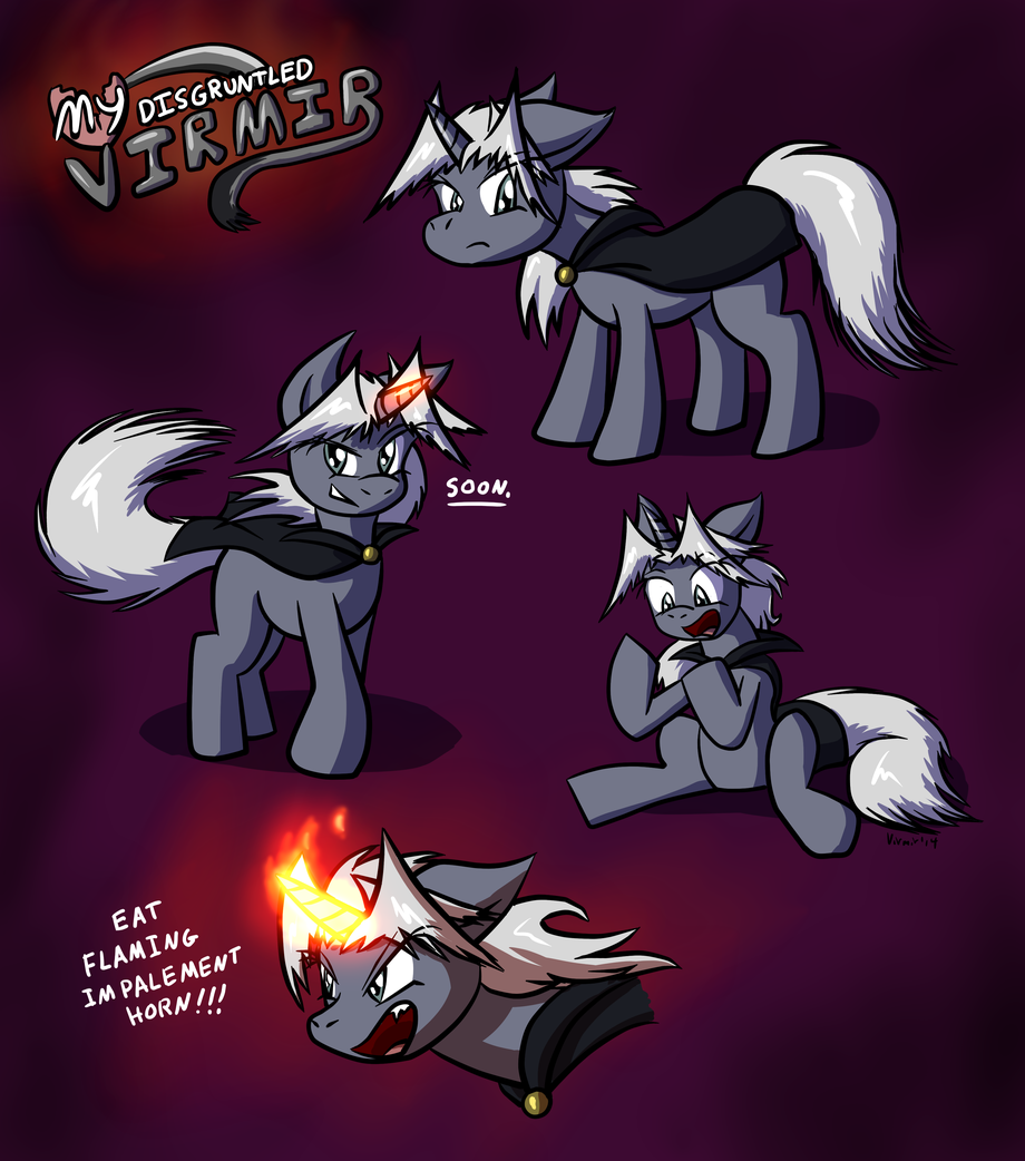 A reclusive, unpersonable mare. Arrived in a mysterious flash of light. Possibly psychotic: often mutters incoherently about "escape" and "thumbs." Seen applying gray paint to flanks. Refuses to address others by their proper names. Time equally divided between attempting to destroy music and complex magical experiments involving interdimentional portals. Employs a rogue changeling as a bodyguard/assistant.