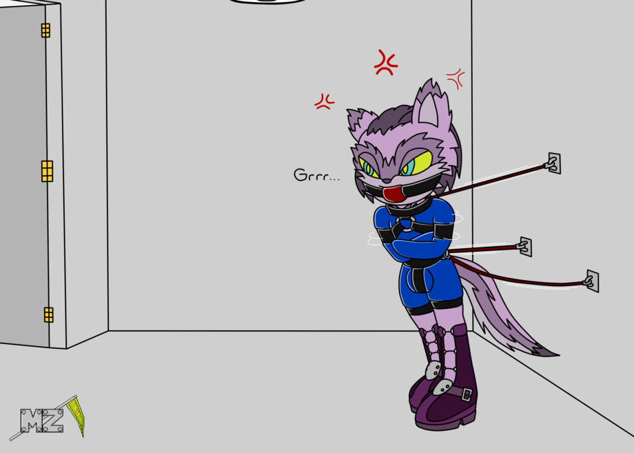 Blaze: *Pulls the gag out of his mouth but lets it hang around his neck* Yes?