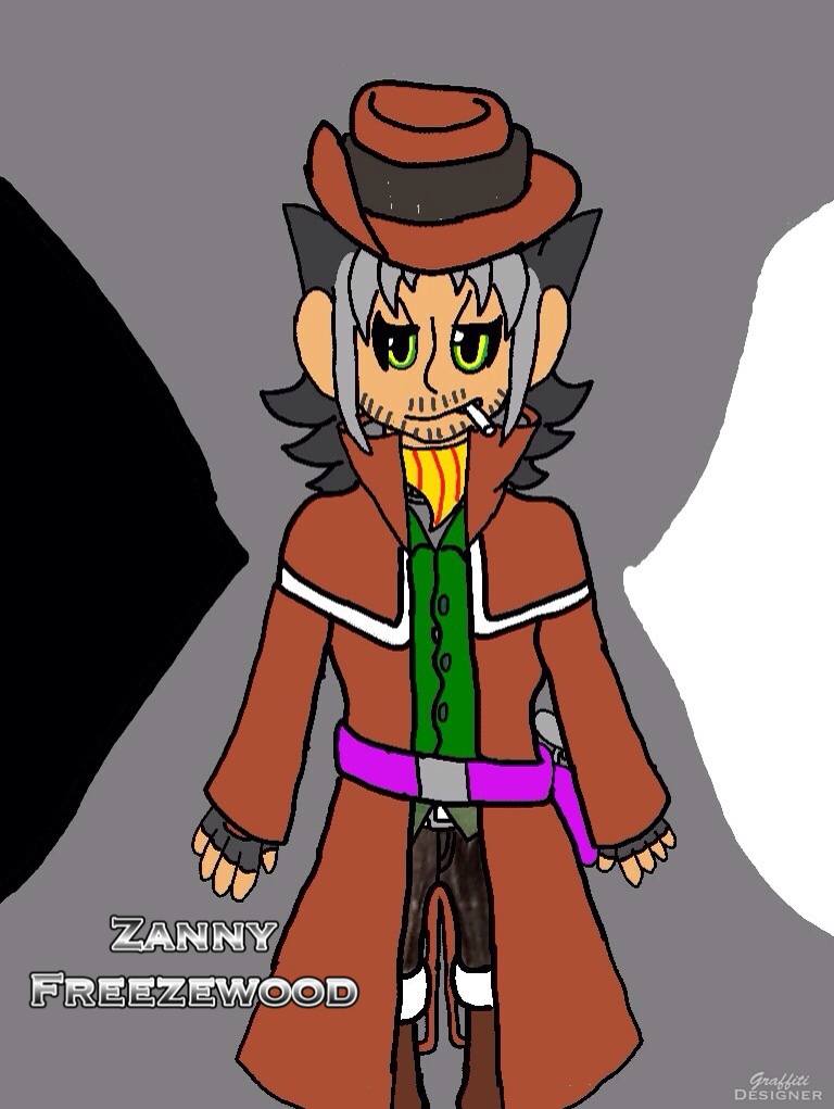 He is a man in his late 20s, years ago he married a 19 turning 20 year old girl that he had known for years, 18 months later he is now a father 5 year old twins (boy and girl) Zachary and Isabelle, he likes to shoot bad guys with twin energy loaded guns (never run out of power), he has super strength, invincibility, teleporting & portal making abilities, and he can channel energy through weapons, as you can see he likes to look a like a cowboy and lastly he loves to ride a hover bike (and he is from the 21st century)