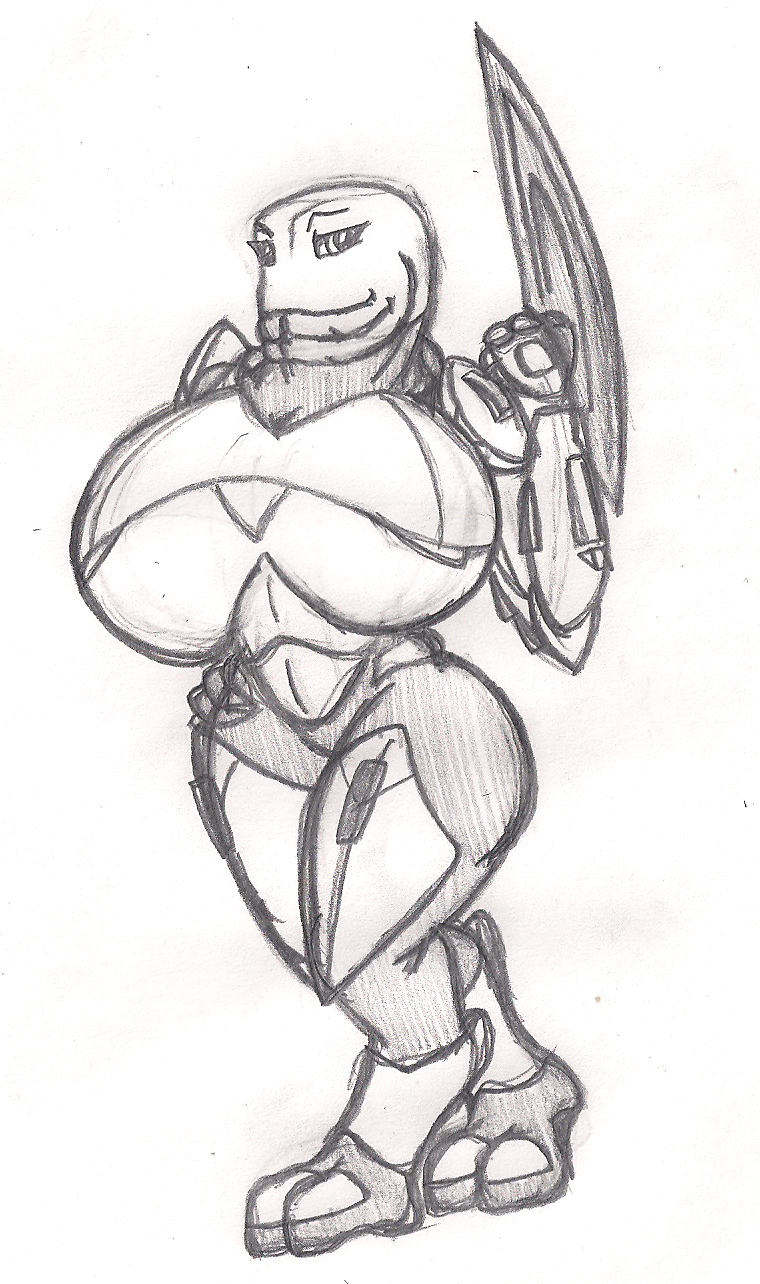 Decided to draw Kar'kana again. my other sangheili girl. a war vet of the human covenant war. showing off how her forerunner made cybernetic arm can project a very powerful hardlight blade. also showing off the armor she's got. unlike shi'ala, she can actually wear armor over her chest.