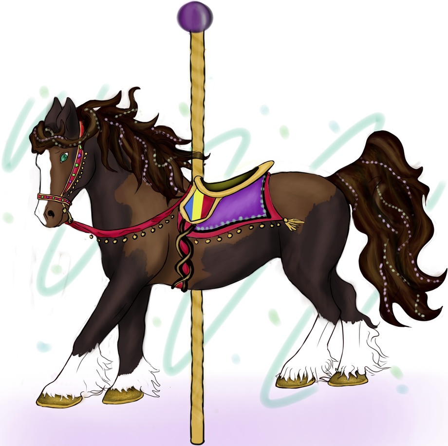 A Gypsy Vanner horse is featured here, decked out in a Romanian saddle and colors and beads a gypsy would envy.