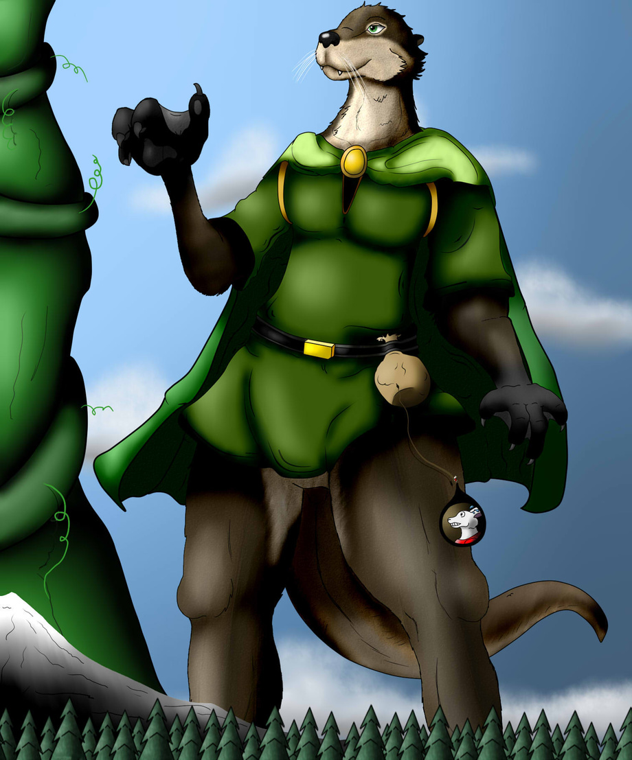 Now as the Goliath of an otter makes his way to the beanstalk, Mellow hangs on for dear life.