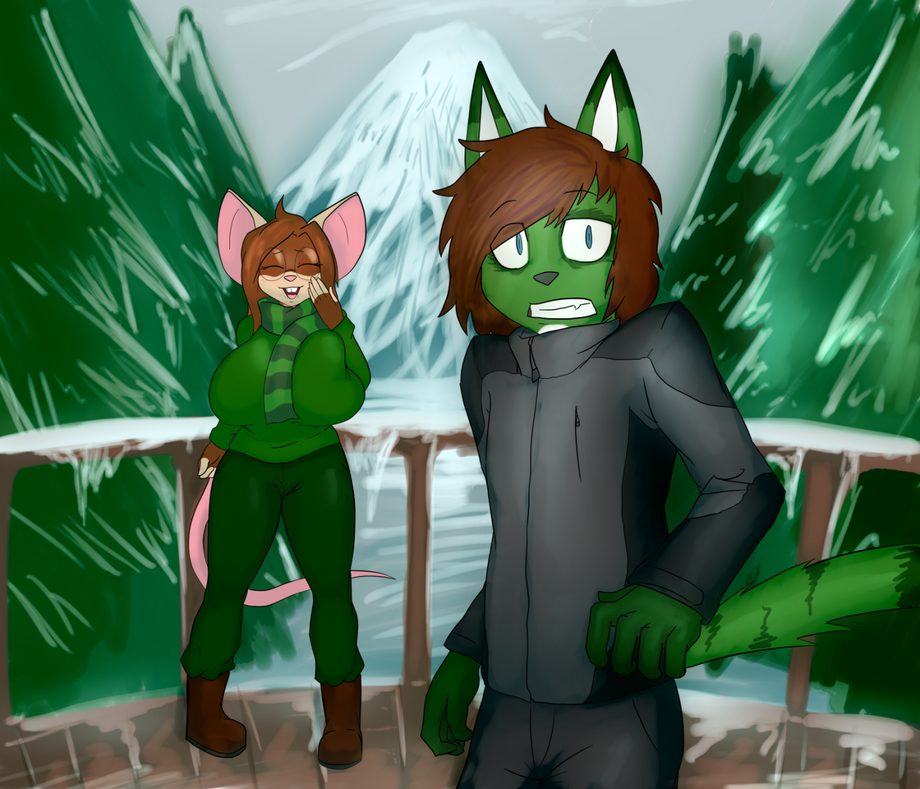 The picture here is an actual photograph. One that should have been deleted, anyway. Duncan set the timer too low and it went off before he was ready - we were just taking a walk at one of those outdoor ski resorts, because I really suck at skiing. Something about having too much forward ballast. (Yeah, I have huge boobs, I get it!)