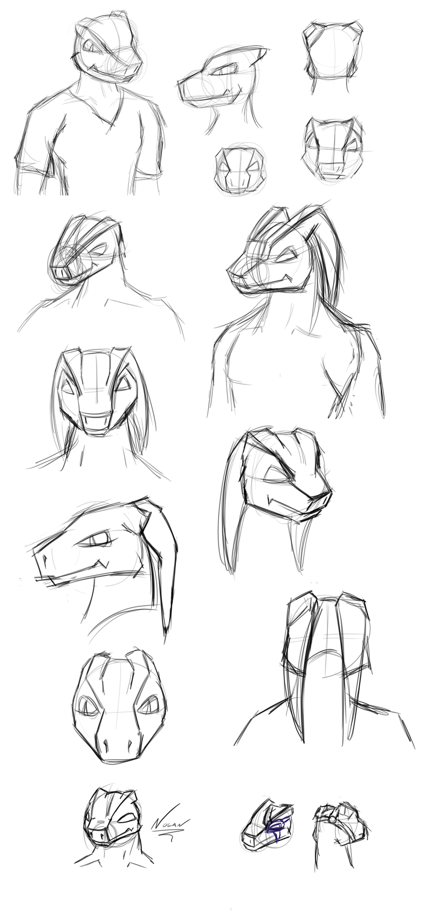 Anyway, this is a big series of headshot sketches of a character, Nolan, because I really want to try and get his head shape down. He may or may not become a fursuit down the line!