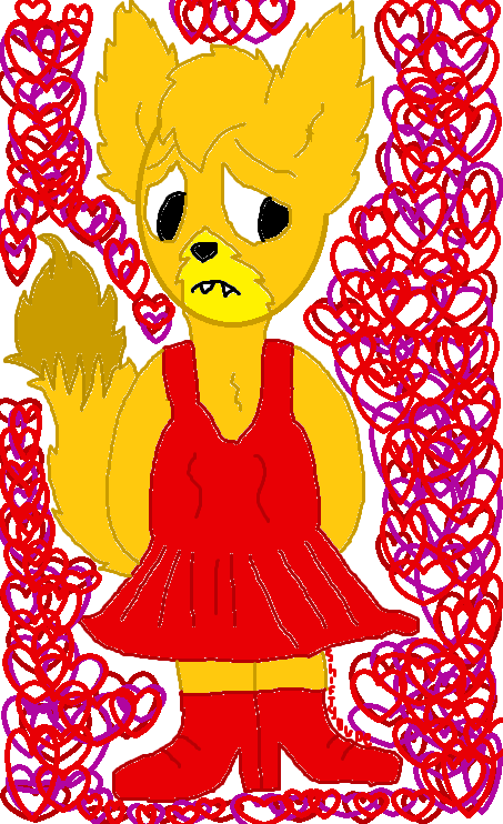 Here, he's modelling a nice elegant red dress. His mates put him up to it and he dosent like it one bit.